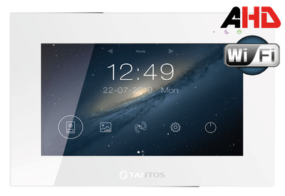Монитор с поддержкой форматов AHD 1080р/720p или CVBS, с возможностью переадресации вызовов на мобильное приложение "vhOme", удаленный просмотр на смартфоне происходящего у вызывной панели, удаленное управление замками или воротами, подключенными к вызывным панелям.