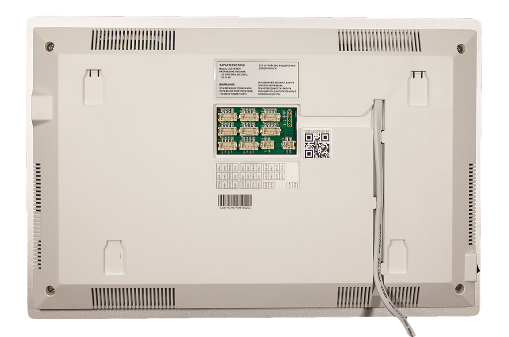 Монитор цветного видеодомофона, с поддержкой форматов AHD 1080р/720p или CVBS, с возможностью отправки уведомлений о вызове на смартфон, удаленный просмотр на смартфоне происходящего у вызывной панели, удаленное управление замками, дополнительный канал управления воротами. Тонкий корпус со стеклянной передней поверхностью. Экран 10 дюймов, емкостной сенсорный, разрешение 1024x600, hands free. Встроенный Wi-Fi модуль (может работать в беспроводных или проводных сетях Ethernet) с возможностью связи вызывных панелей с приложением "vhOme" для iOS и Android. Подключение 4-х видеокамер, 4-х панелей, до 6-ти мониторов в одной системе. Встроенная память 50 фото в формате CVBS или 10 фото в формате 1080p. Запись фото или видео на microSD карту до 256Гб (в комплект не входит). Запись по детектору движения или постоянная по всем каналам. Питание: 220В АС/15В DC, Габариты: 303х200х27мм.