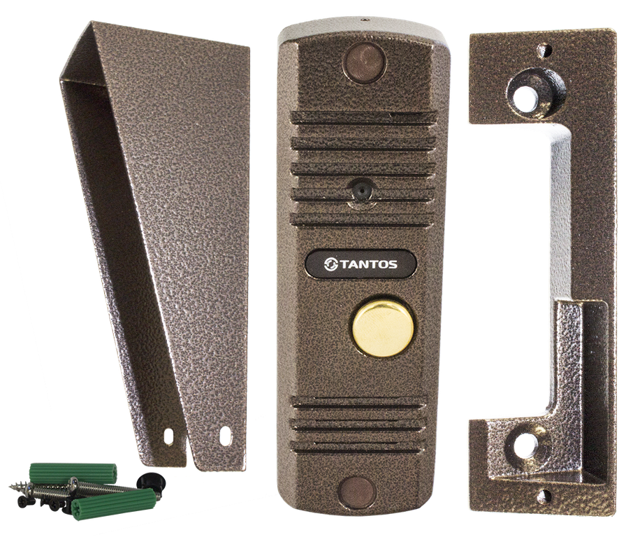 TANTOS WALLE+ – вызывная видеопанель домофона с современным функционалом, выполненная в вандалоустойчивом металлическом корпусе под медь. В комплект поставки входят кронштейн для установки под углом (что очень удобно при размещении панели рядом с дверью), а также козырек для защиты от дождя. Камера с разрешением 900 ТВЛ обеспечивает высокое качество картинки. Имеет качественный звук, а также регулировку громкости динамика (под отвертку), что позволяет настроить звук в любых условиях использования панели. Вызывная панель WALLE+ также имеет встроенную ИК-подсветку, невидимую глазу человека. Предназначена для накладного монтажа, схема подключения – стандартная четырехпроводная, совместима с большинством популярных на российском рынке домофонов. Вызывная панель WALLE – отличный вариант в привычном всем классическом корпусе.