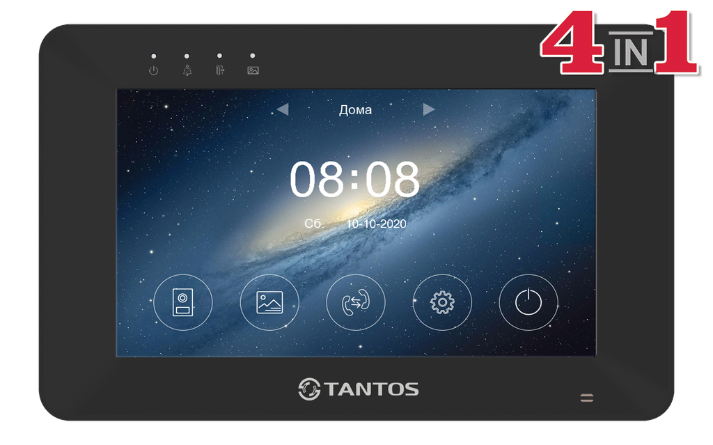 Монитор цветного видеодомофона, с поддержкой форматов AHD/CVI/TVI 1080р/720p или CVBS (PAL), с возможностью отправки уведомлений о вызове на смартфон в мобильное приложение "vhOme 2.2", удаленный просмотр на смартфоне вызывных панелей и видеокамер, удаленное управление замками или воротами, подключенными к вызывным панелям и просмотр записей на SD карте. Экран 7 дюймов, емкостной сенсорный, разрешение 1024x600, hands free. Встроенный Wi-Fi модуль (может работать в беспроводных или проводных сетях Ethernet) с возможностью связи вызывных панелей с приложением "vhOme 2.2" для iOS и Android. Выход HOOK для работы с блоками сопряжения подъездных домофонов.