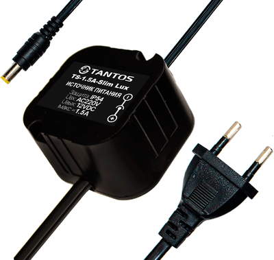 Источник вторичного электропитания 12В, 1.5А. Выход: +12В/1.5А, разъём питания; вход: ~220В, сетевой шнур с вилкой в розетку. Длина кабеля: 40 см (от БП до разъема) + 40 см (от БП до вилки). 43×45×27 ммБП выполнен в пластмассовом неразборном корпусе со степенью защиты IP54. Для подключения прибора к сети переменного тока 220В предусмотрен штатный кабель с сетевой вилкой. На выходе прибора расположен соответствующий разъём питания (DC-разъём).
