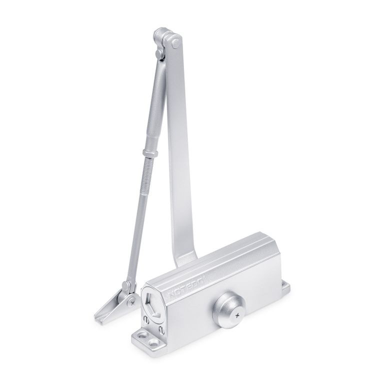 Доводчик дверной, механо-гидравлический, двухскоростной, усилие EN5, с рычажной тягой, для дверей весом до 100 кг, цвет - сереброВес дверного полотна: 100 кг